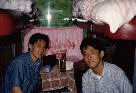 車内にていっしょに旅行した友人の木村氏と撮影。狭いコンパートメントに4人が一週間くらしていました。 |