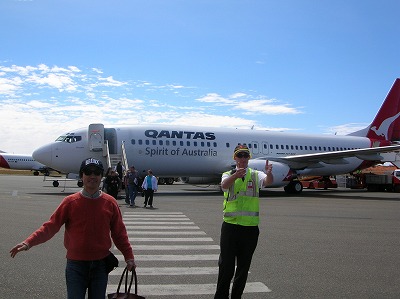 空港は何にもない。飛行機といっしょに写真を撮ろうとしたら「ダメ、早く行きなさい」と怒られました。 →